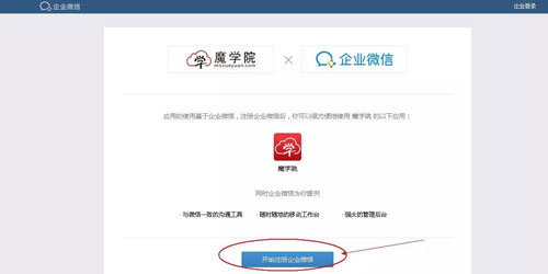 亲爱的魔学院用户,如果您的企业想通过企业微信来使用魔学院,以下给您送上一份清晰简洁的图解教程,几步操作即可成功对接!