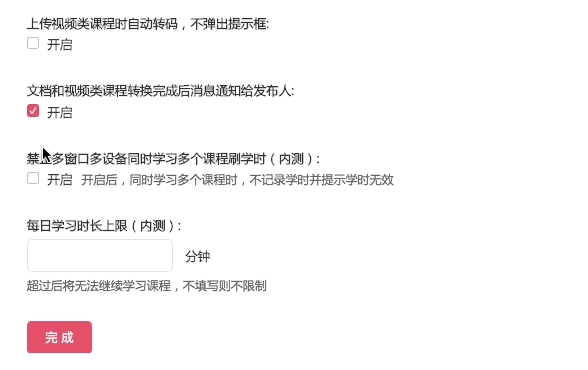 【新增】课程设置中增加每日学习时长上限,超过后将无法继续学习课程;