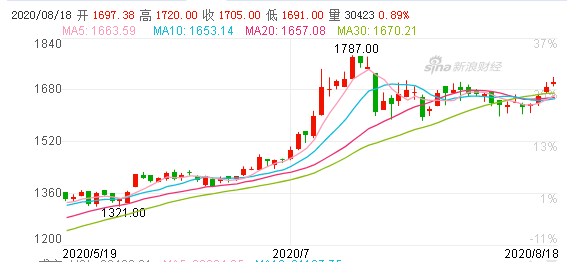 而且8月以来,茅台每股平均在1700元左右,稳如泰山。