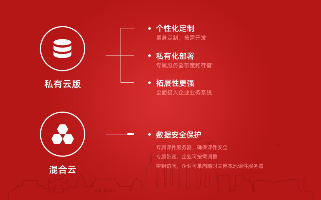 基于“每个企业都是一所大学”的愿景,魔学院为企业客户提供了针对不同规模的通用化、标准化产品,少则数十人、多则囊括百万人。同时,通过个性化配置、二次开发、开放平台、混合云和私有云技术,魔学院还兼顾企业个性化需求,提供更优培训服务方案。