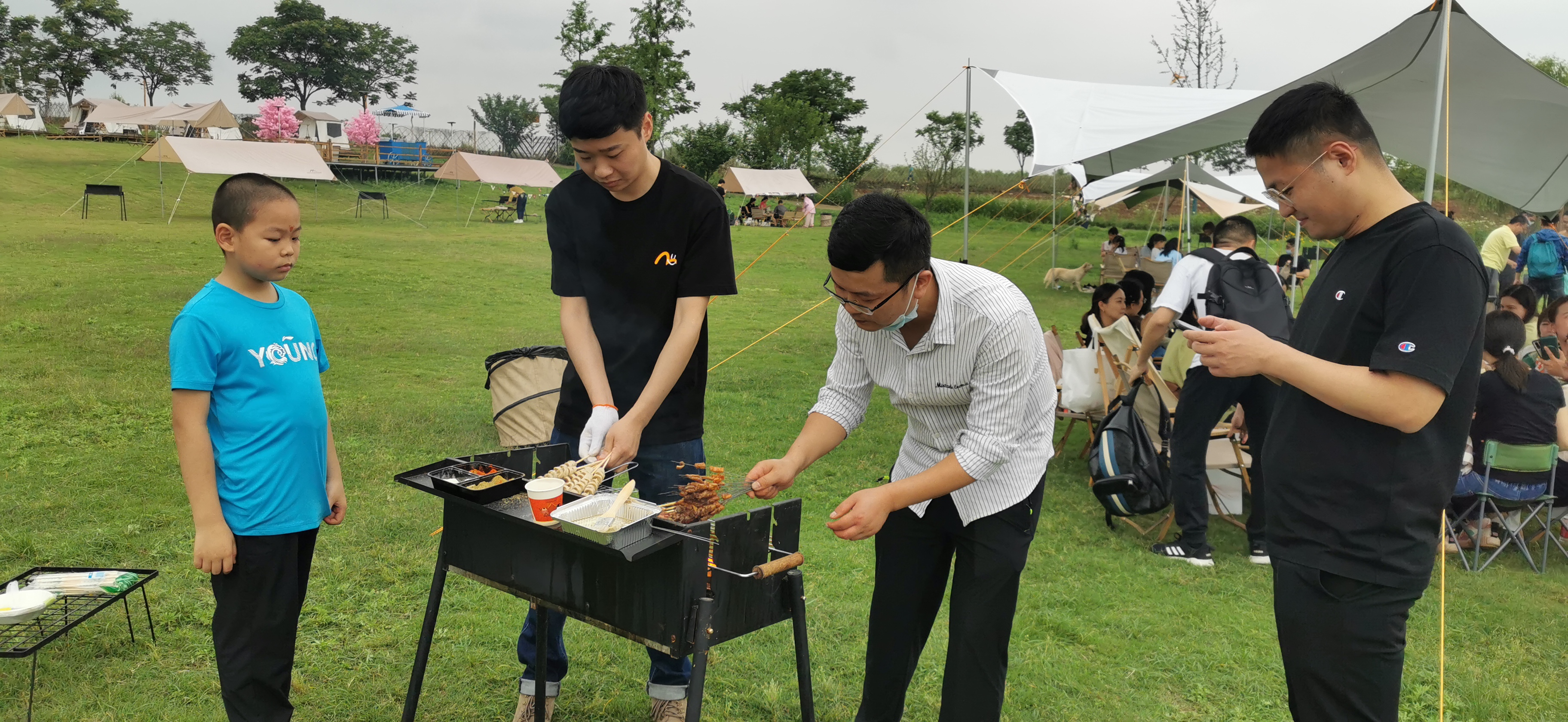 会后我们一起开启了夏日露营BBQ,架好的烤架升起炊烟,为这野外晕染了几分炊烟气息。我们准备了有趣的游戏和话题,丰富了撸串儿的情绪,也许幸福就是生活中的每一场小聚会。
